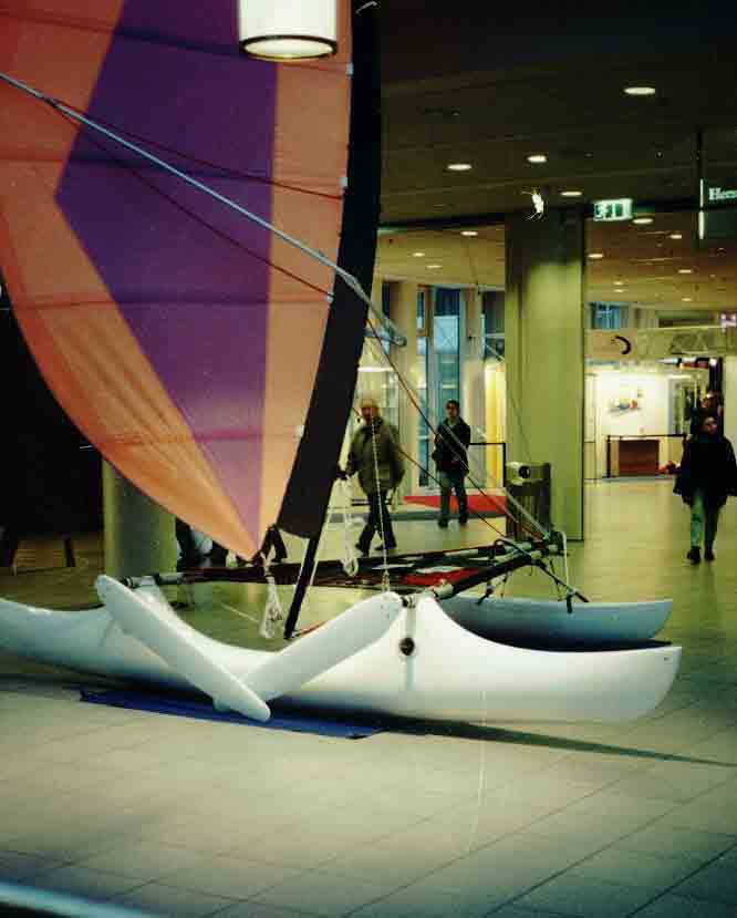 Prize awarded for design this 16 foot outrigger is located between catamaran, windsurfer and a dinghy.