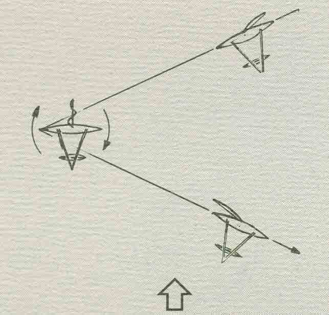 While never changing the position of the boat toward the wind, the rig therefore gets tilted toward the outrigger on the weather- side.